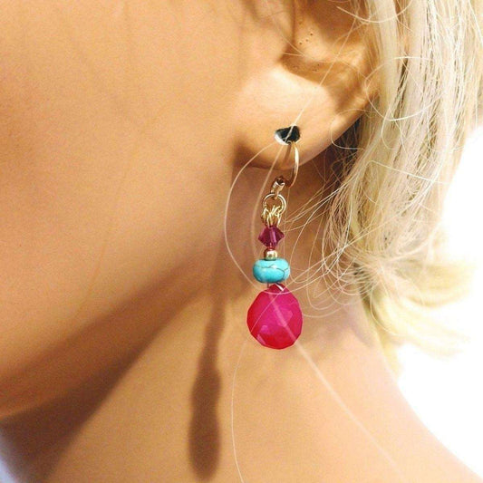 14 KT Gold Filled Wire Wrapped Pink And Turquoise Drop Gemstone