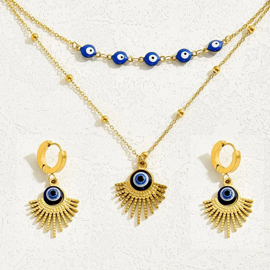 Stainless Steel Crystal Geometric Earrings and Necklace Jewelry Set